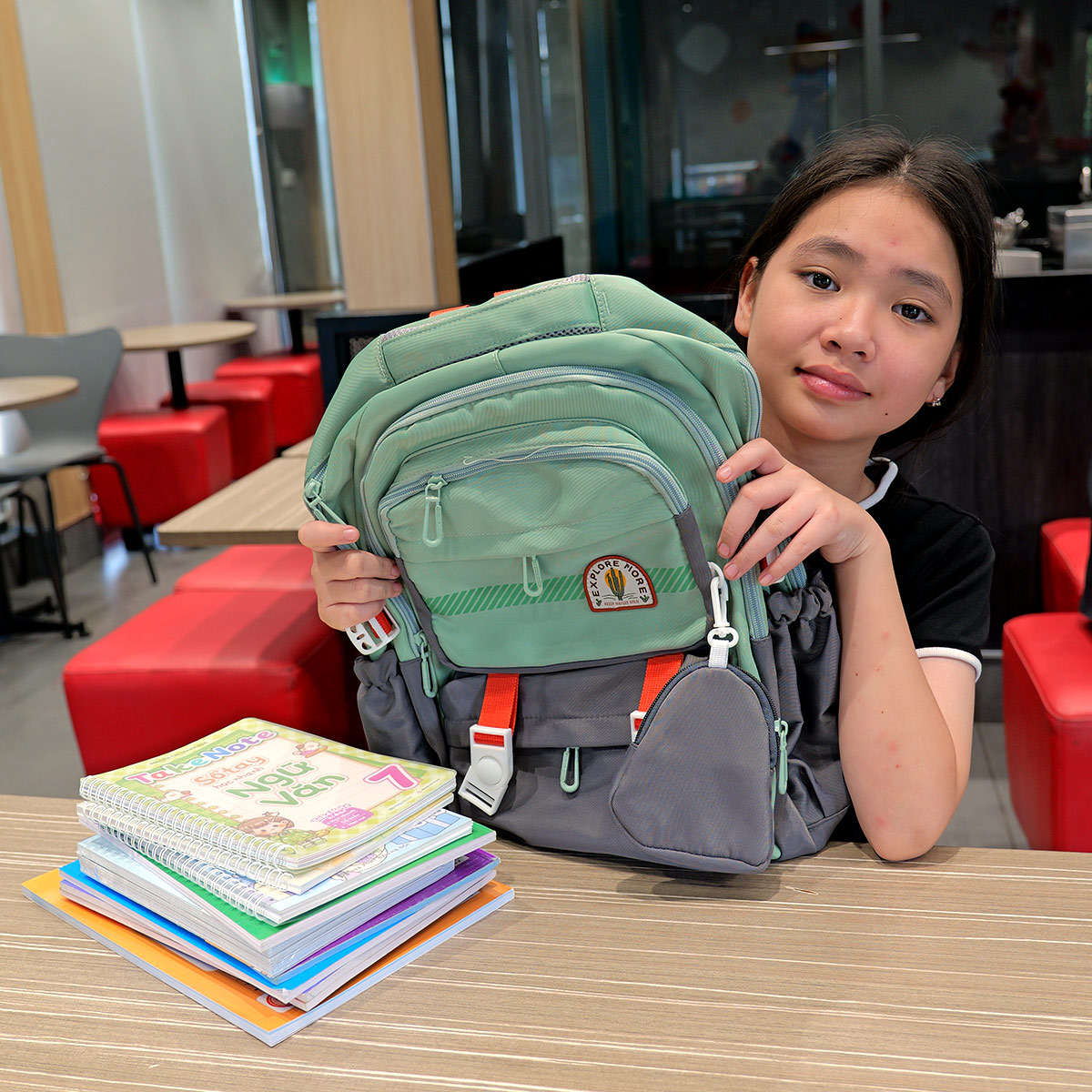 Wir haben außerdem einen Laptop, eine Maus, Schuluniform (in Vietnam verpflichtend), einen Rucksack und Schulbücher für das kommende neue Schuljahr für sie gekauft.
