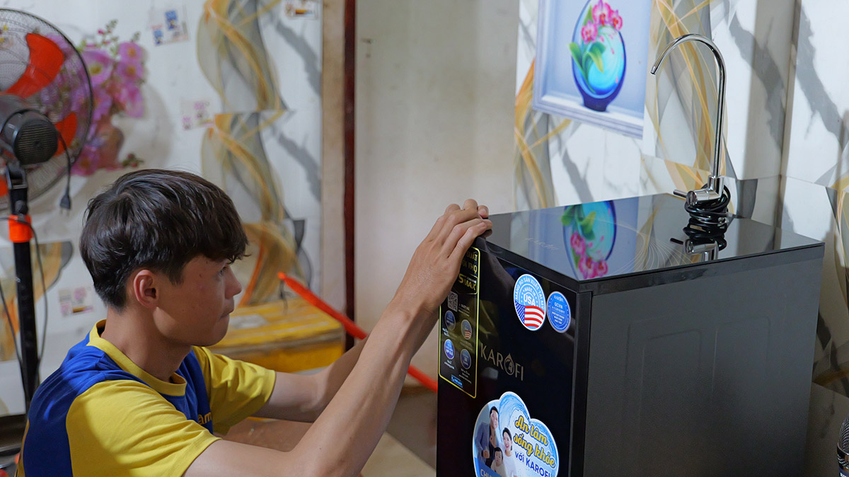Die Wasserfilteranlage wurde schnell und unkompliziert installiert; Liefer- und Installationskosten waren bereits im Kaufpreis enthalten. Zuvor musste die Familie ihr Trinkwasser aus dem Brunnen abkochen. Durch die vom Verein bereitgestellte Filteranlage haben sie nun jederzeit Zugang zu sauberem, gefiltertem Trinkwasser.